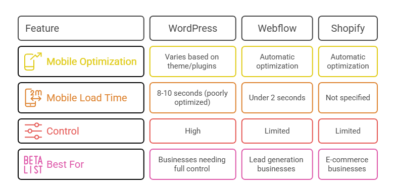 For e-commerce businesses, Shopify’s mobile conversion rates typically exceed custom-built solutions. The platform has eliminated common friction points that cause abandoned carts on mobile devices.